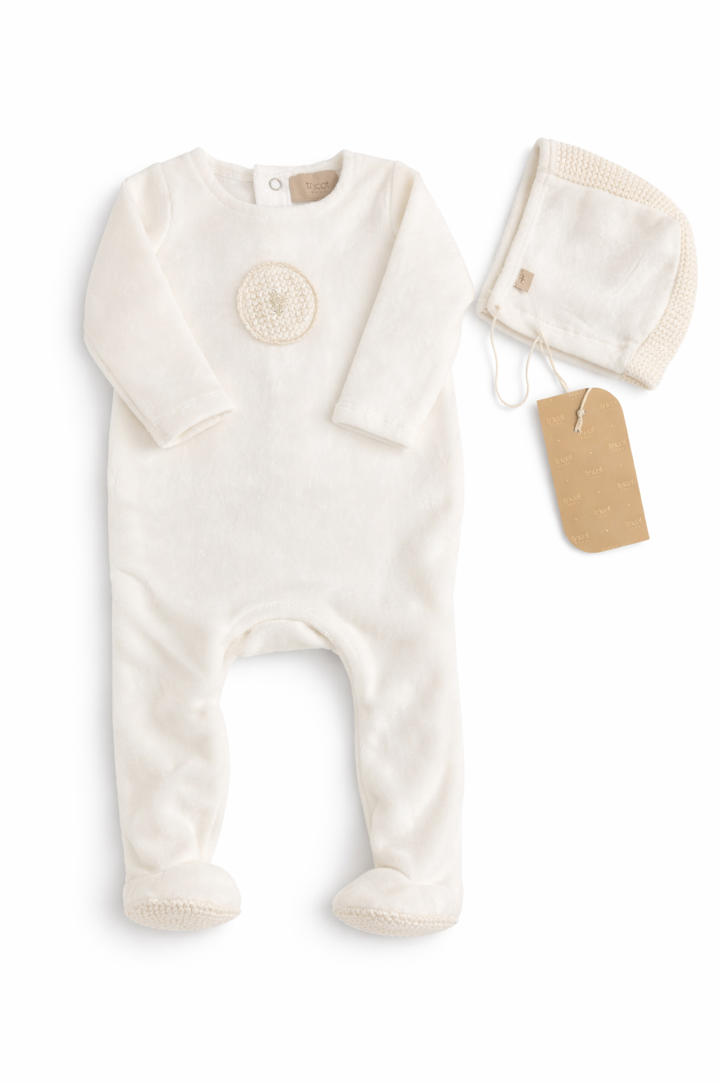 Crochet Applique Velour Footie and Bonnet