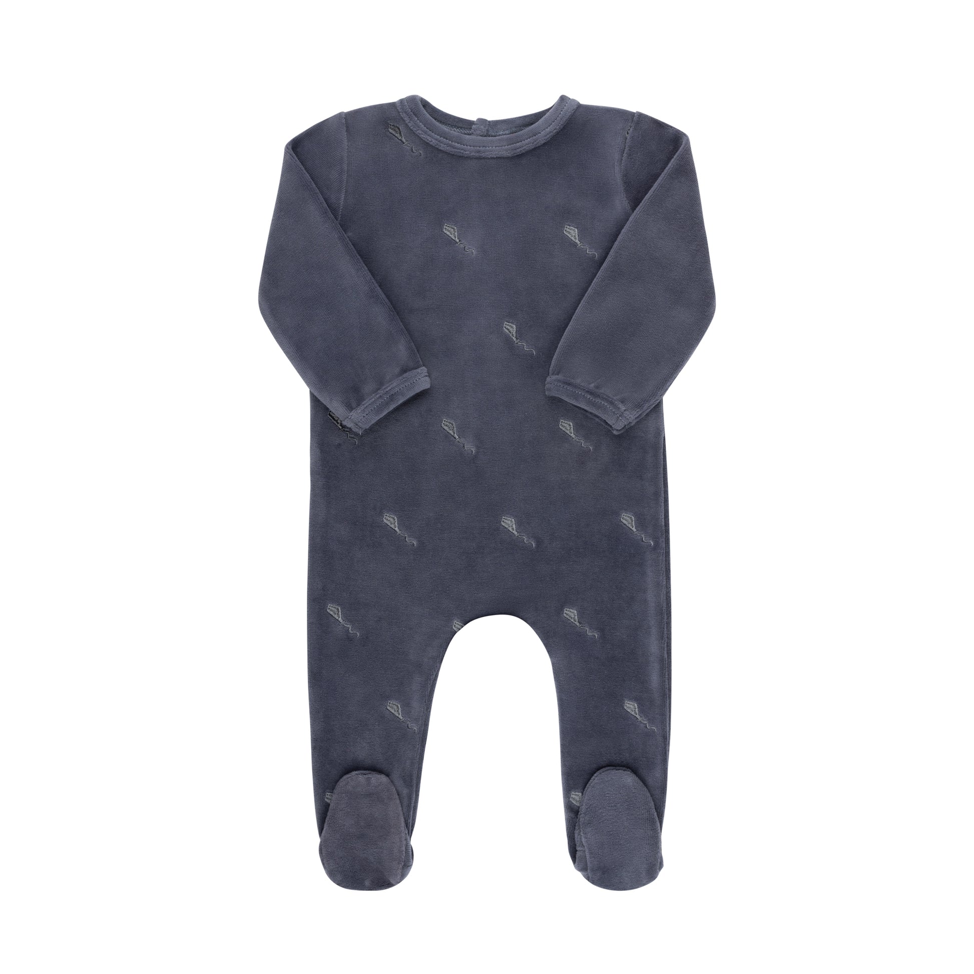 - Plush velour footie with embroidered kite detail