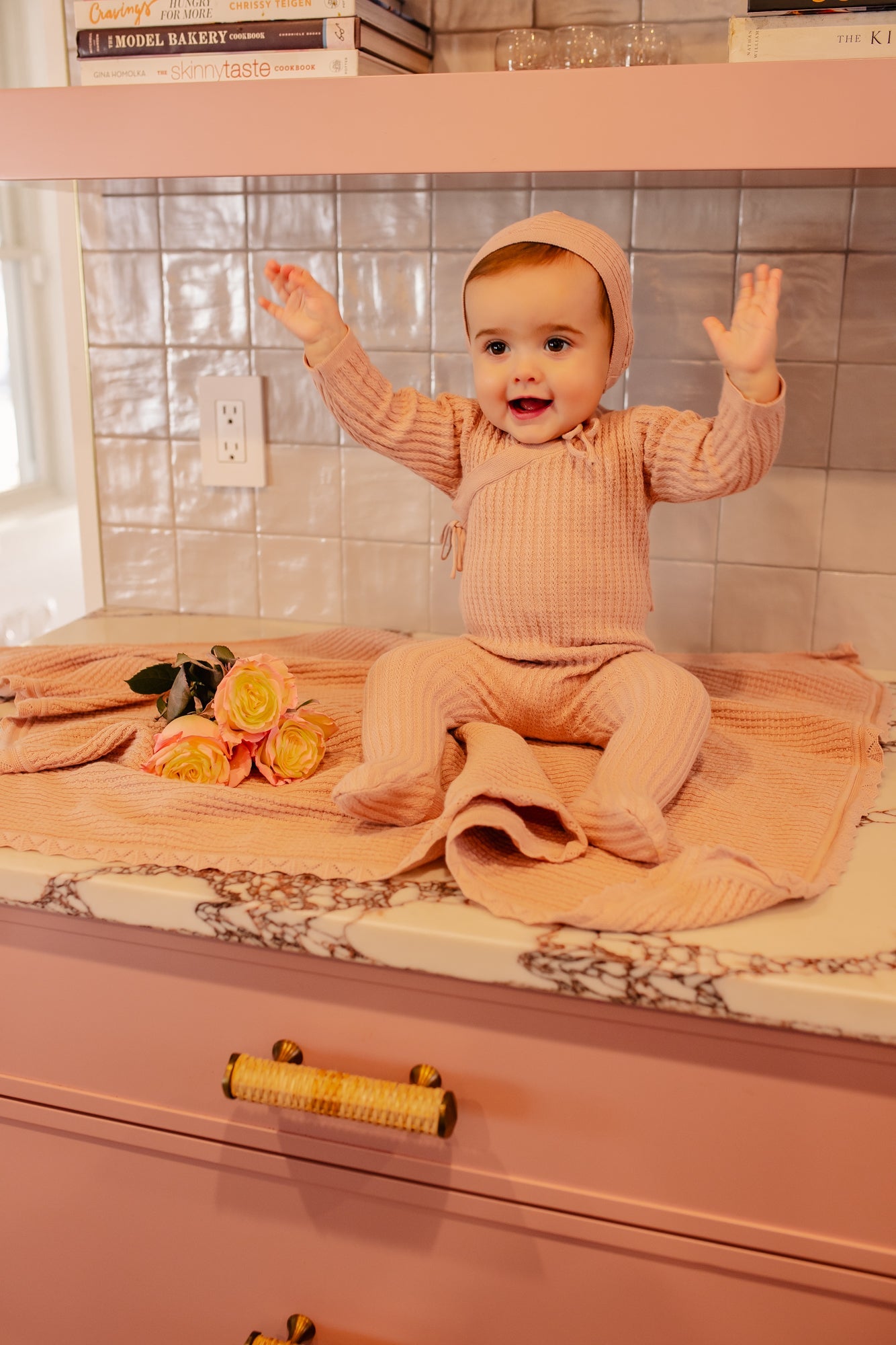Rich ribbed knit detail - Footie, Hat & Blanket